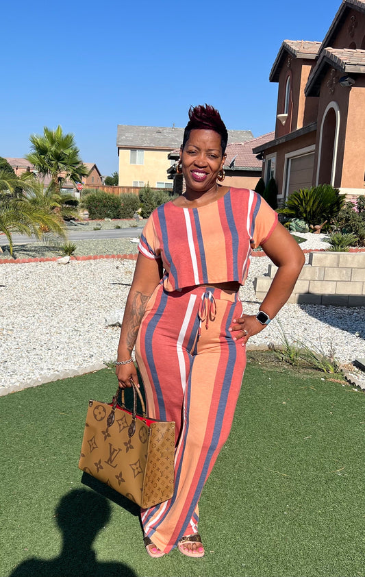 Ivory 2-Piece Pants Set with Brown Trim - Tall Girl Friendly