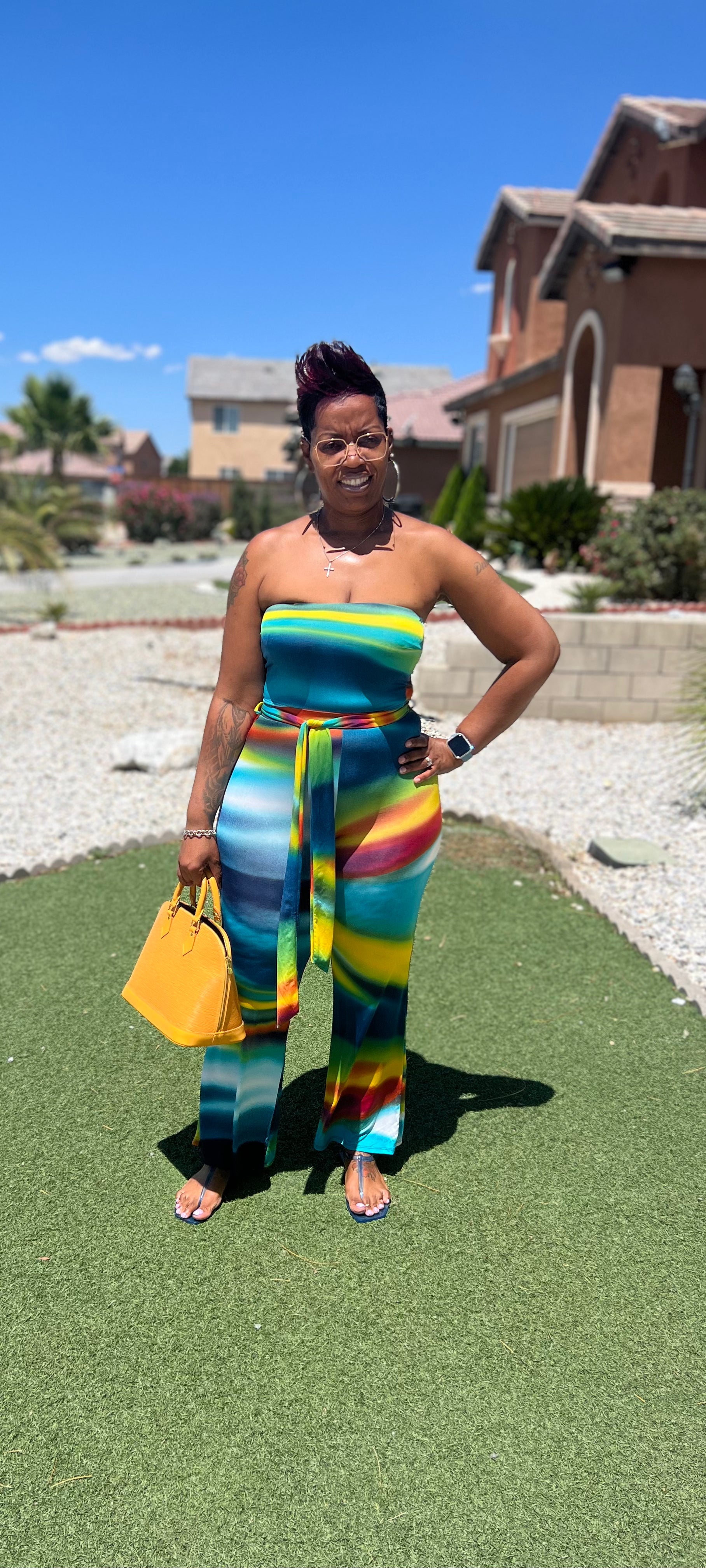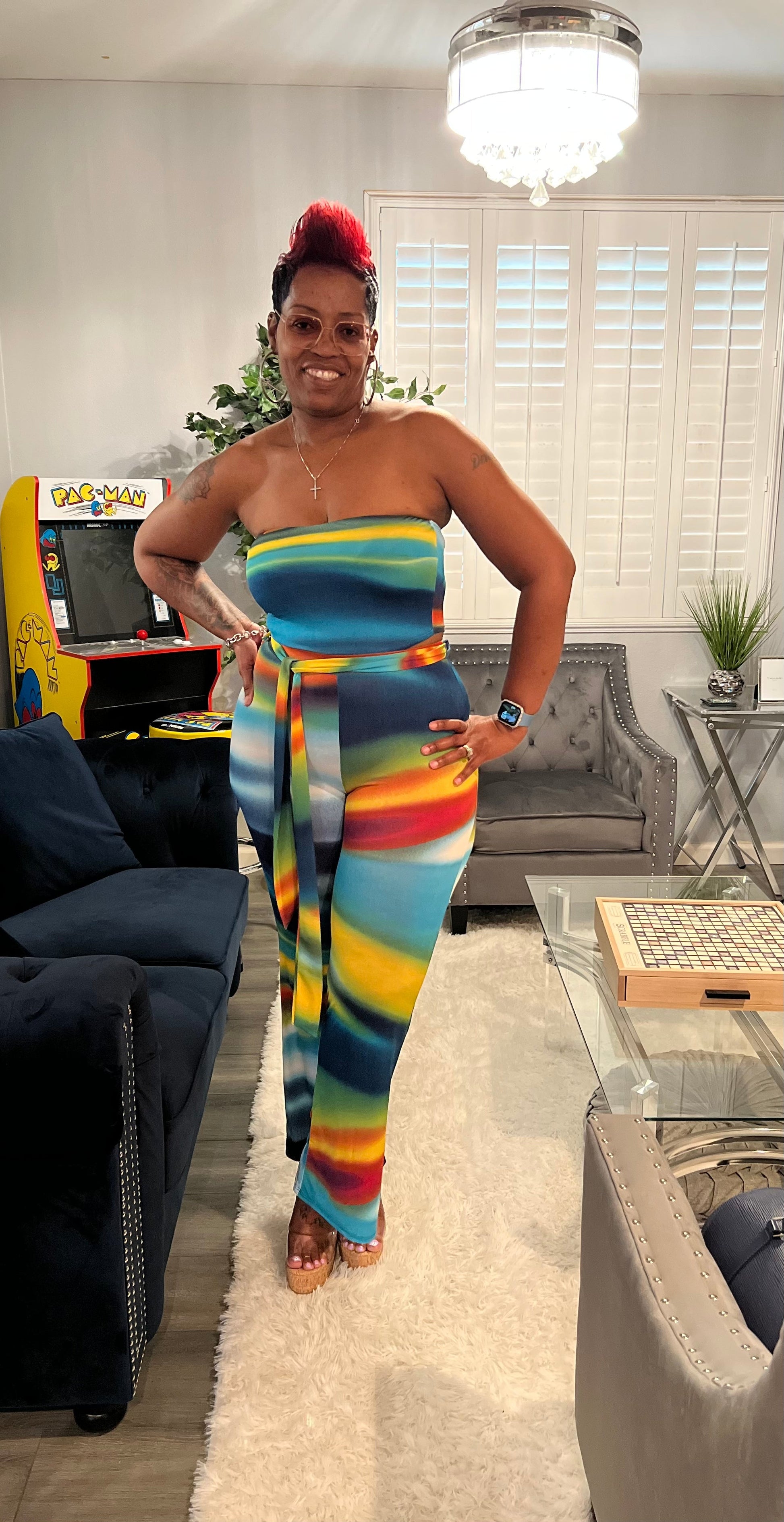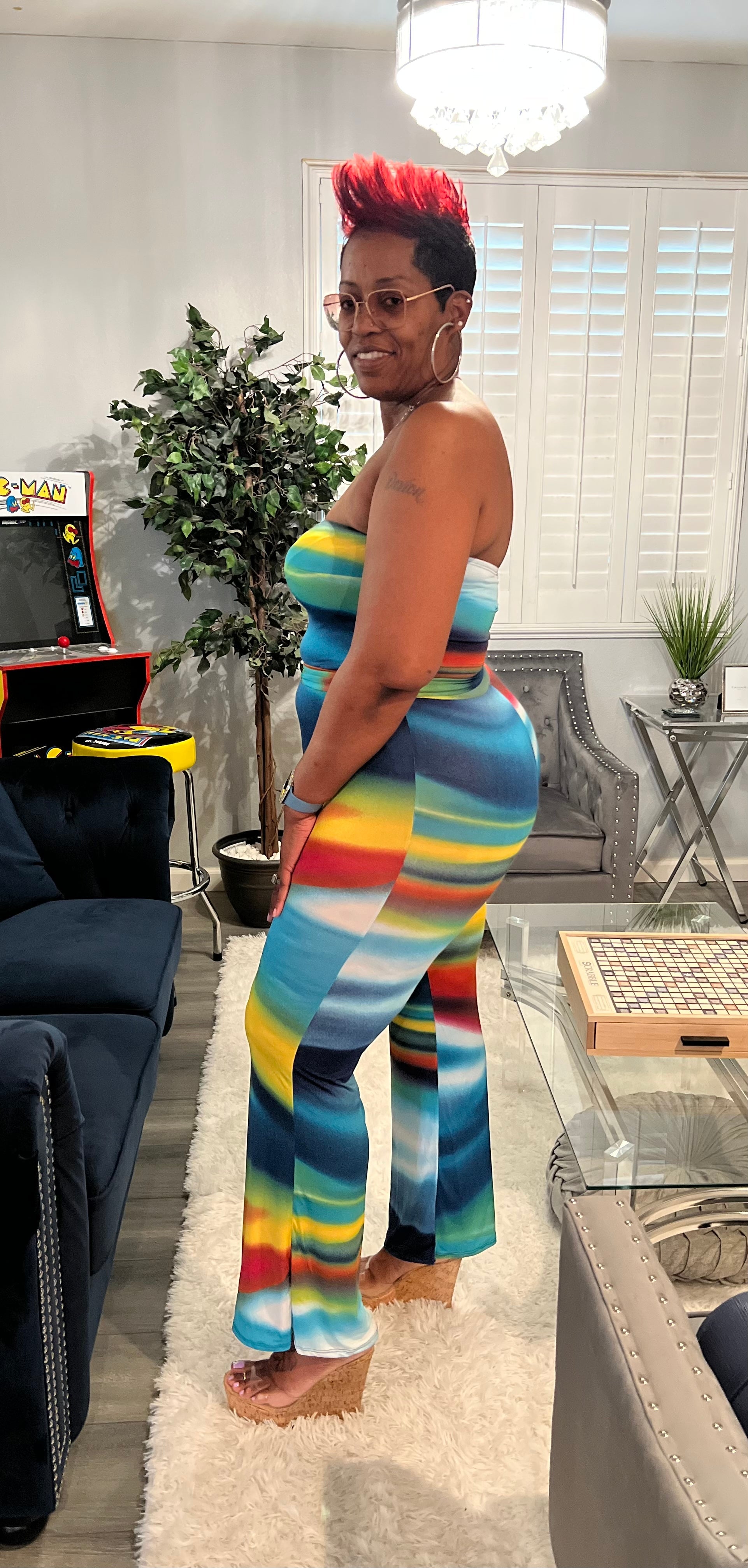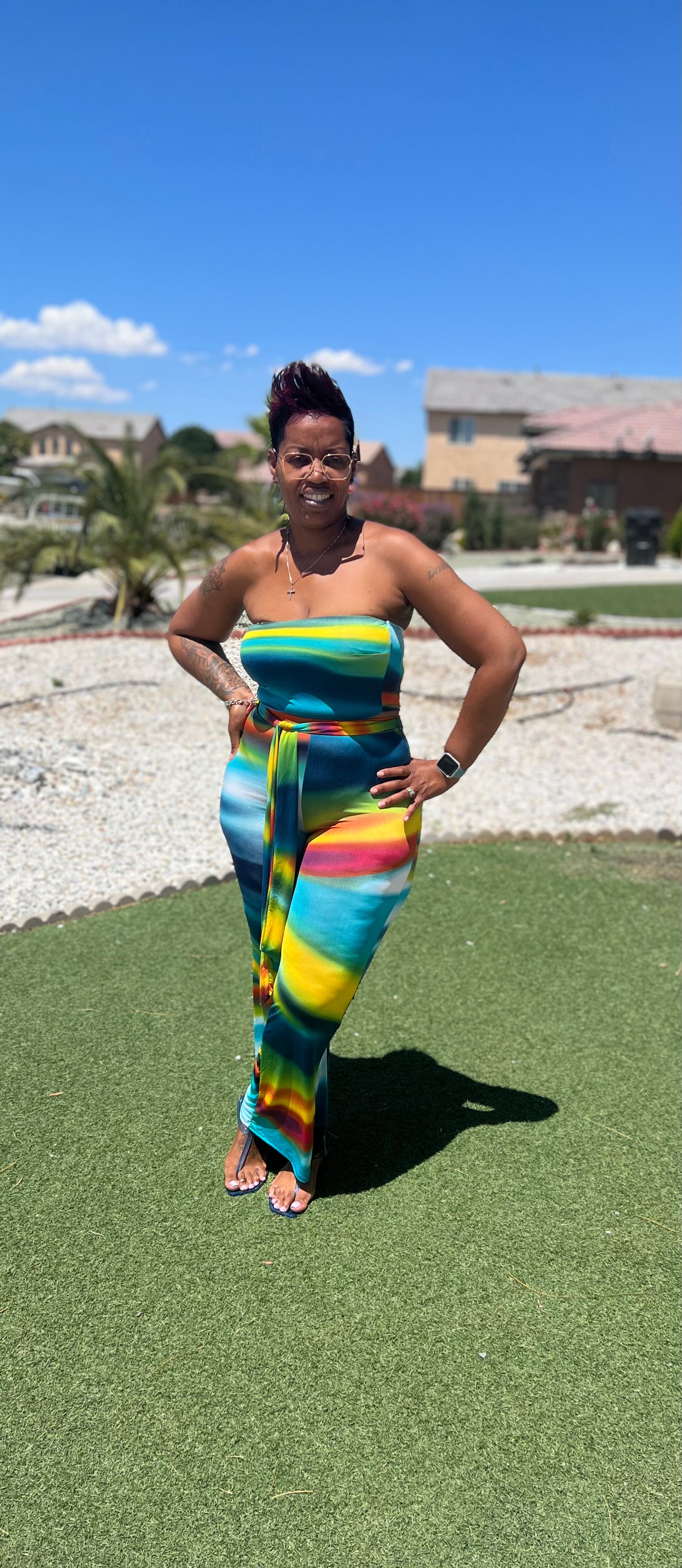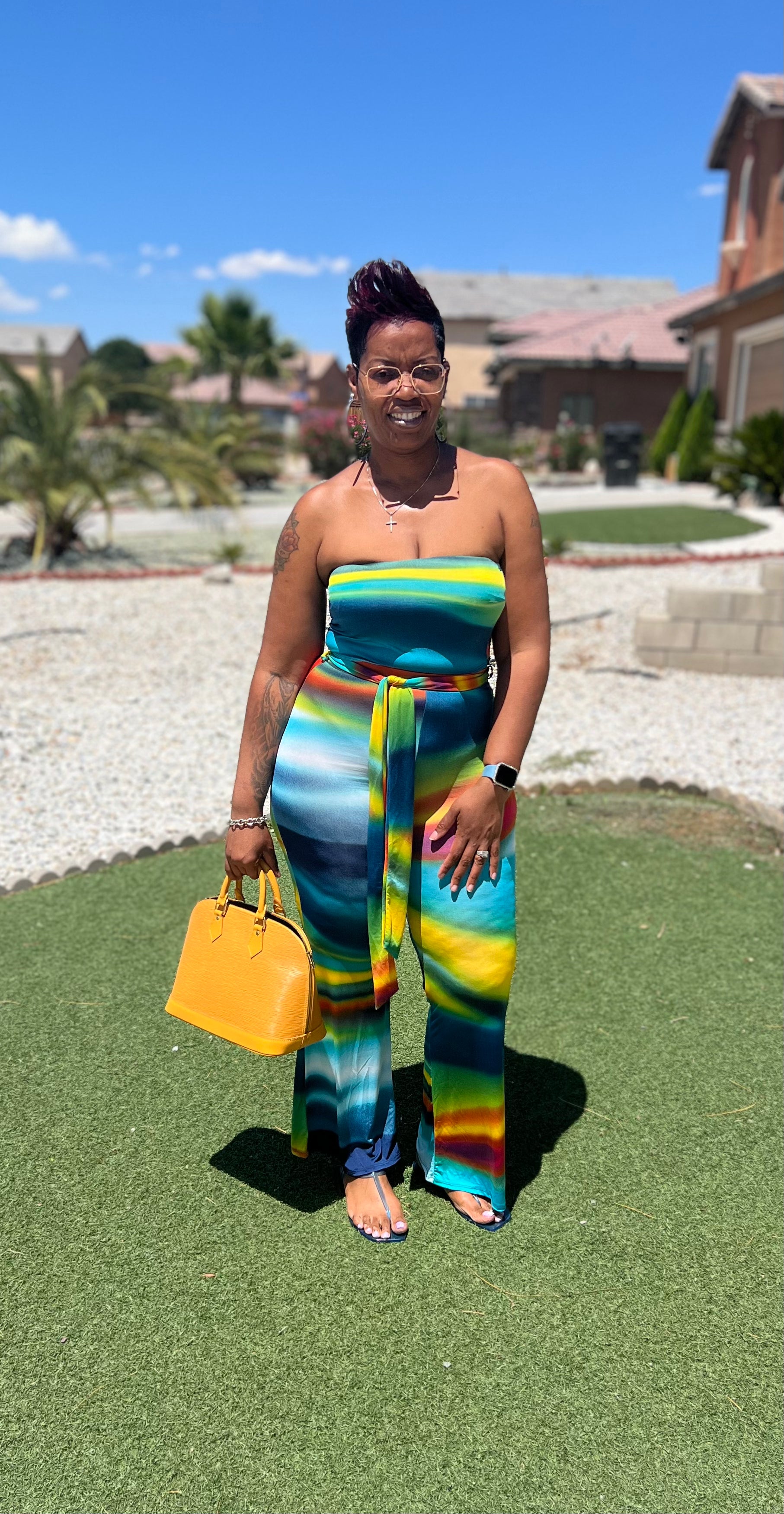 Introducing our Teal/Mustard/Rust 2 Piece Set—a chic and comfortable ensemble featuring a tube top and pants with a waist tie, wide legs, and stretch for ultimate style and ease. This versatile set is designed to embrace and celebrate all women, available in both regular and plus sizes. The model, standing at 5'8" and wearing a size Large, beautifully showcases the flattering fit of the ensemble.
