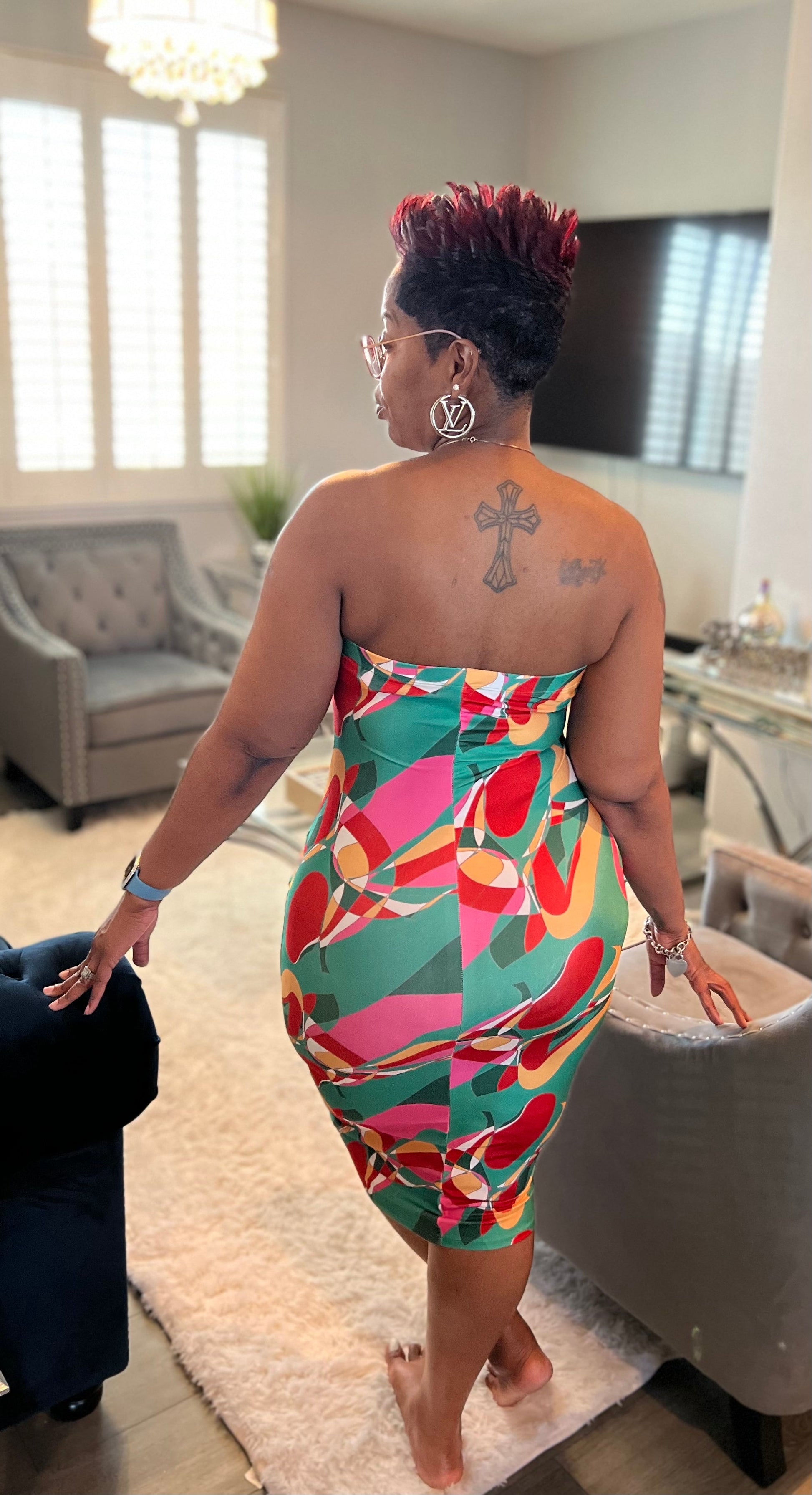 Introducing our Plus Size Green Mixed Tube Top Bodycon Off-Shoulder Mid Dress—a stylish and comfortable piece designed for a flattering fit and excellent stretch. This dress features a tube top design, bodycon silhouette, and an off-shoulder style, creating a chic and trendy look. The green mixed color adds vibrancy to the dress, and the excellent stretch ensures comfort and ease of movement. The model, wearing a size XL, beautifully showcases the dress's fit and style.