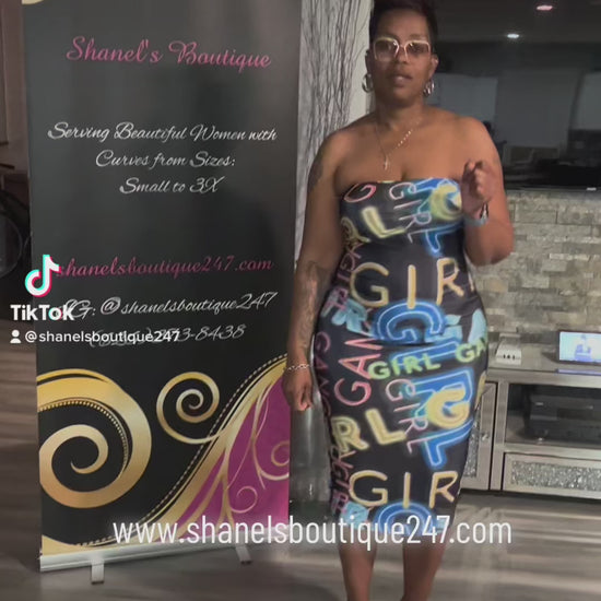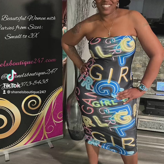 Introducing our Plus Size Letters Tube Top Bodycon Off-Shoulder Mid Dress—a trendy and flattering piece designed for a stylish and comfortable fit. This dress features a tube top design, bodycon silhouette, and an off-shoulder style, creating a chic and modern look. The letters print adds a playful and unique element to the dress. Crafted for plus-size proportions, this dress ensures both style and comfort. The model, standing at 5'8" and wearing a size XL, beautifully showcases the dress's fit and style.
