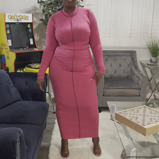 Elevate your ensemble with our stunning Two-Piece Set—a delightful combination of a ribbed crop top and a high-waisted skirt that effortlessly blends comfort and style.