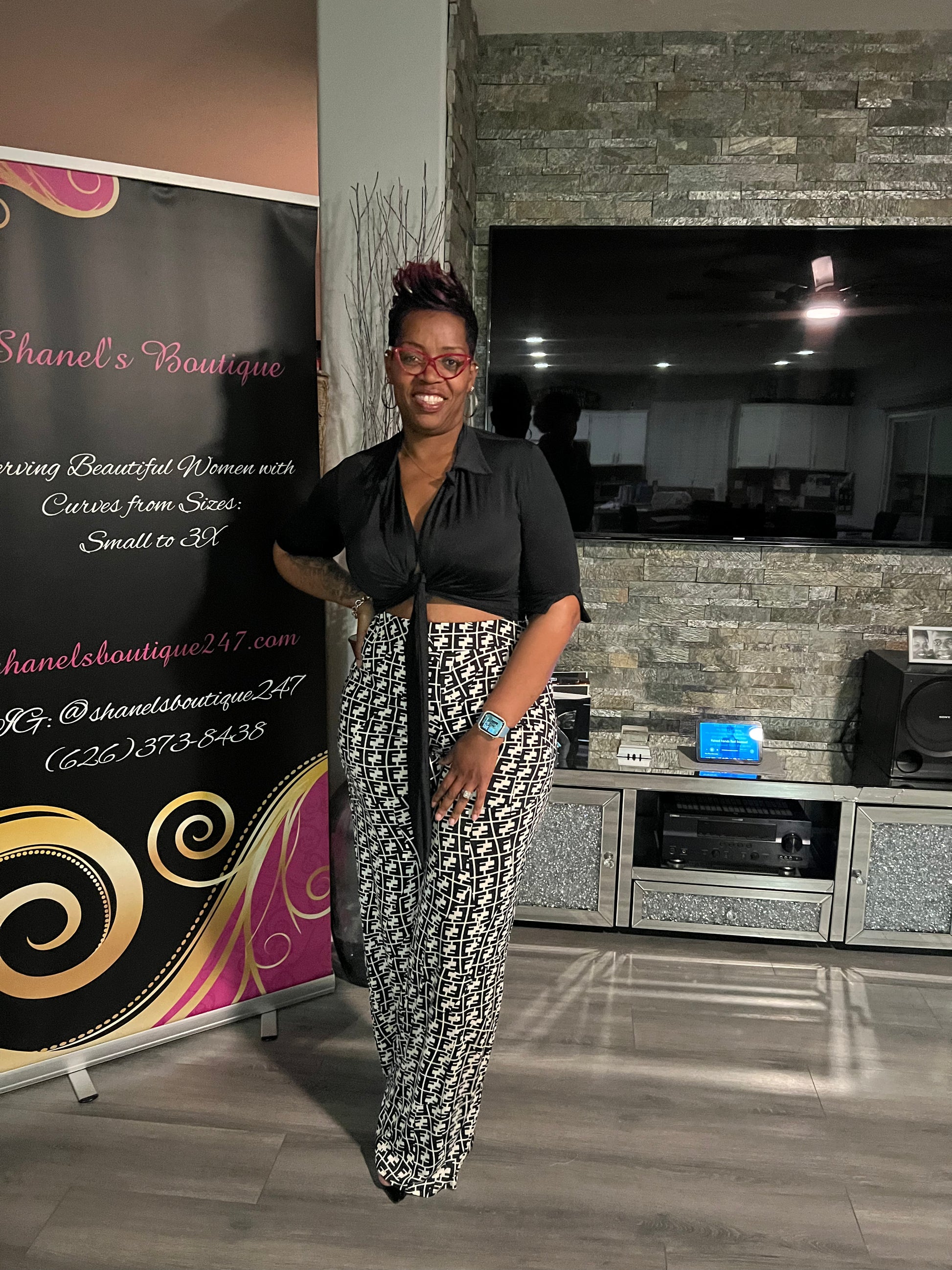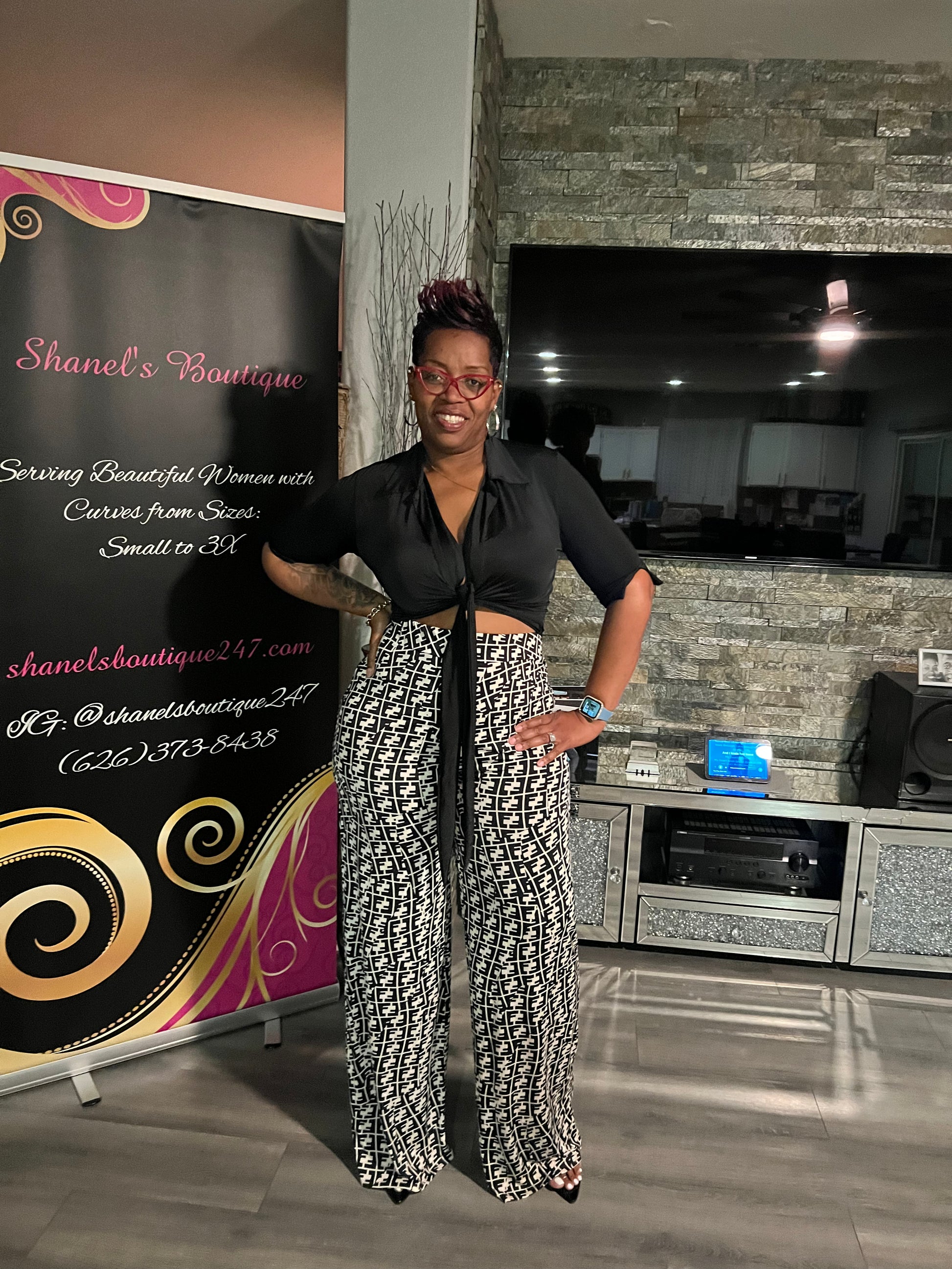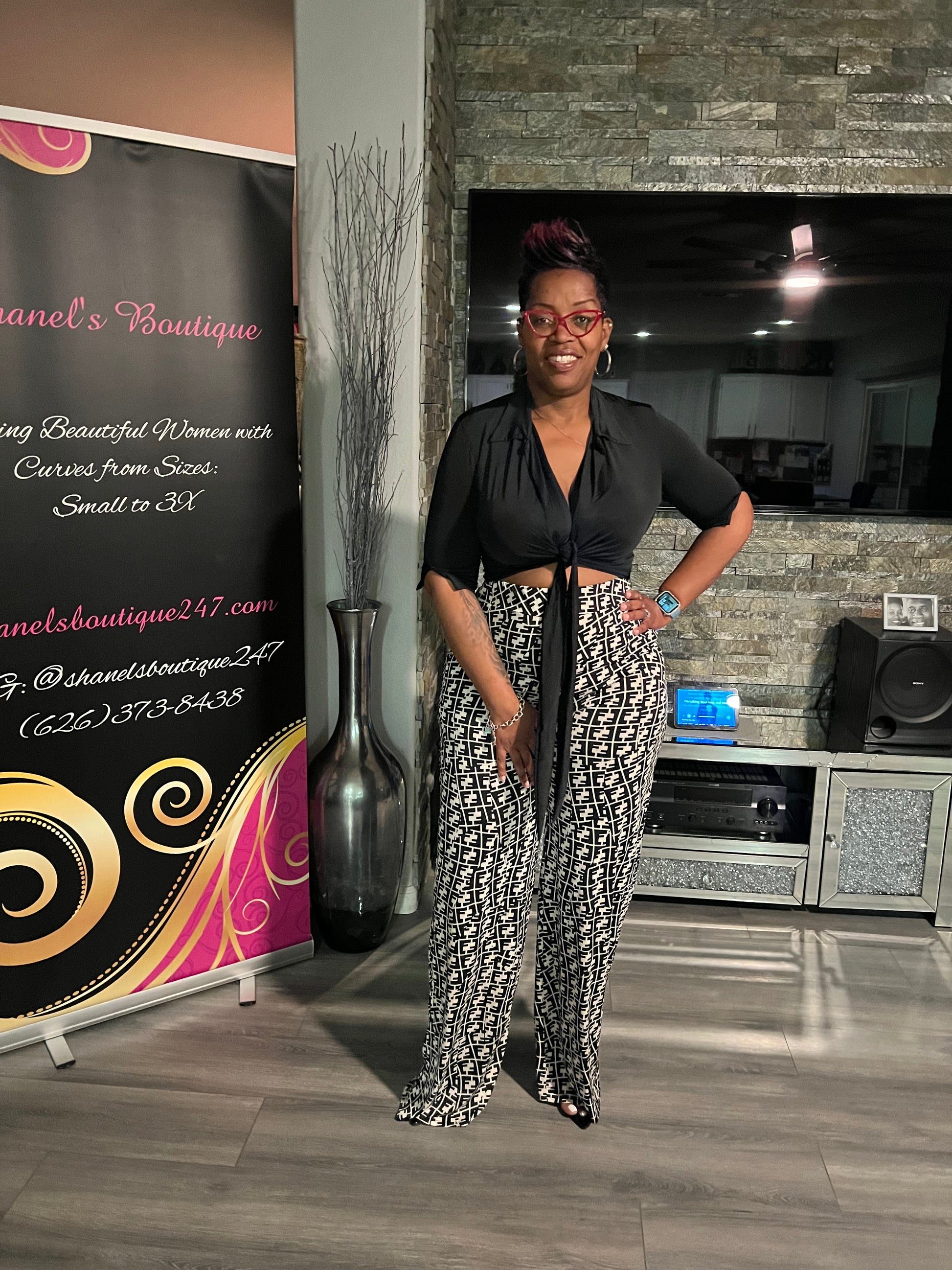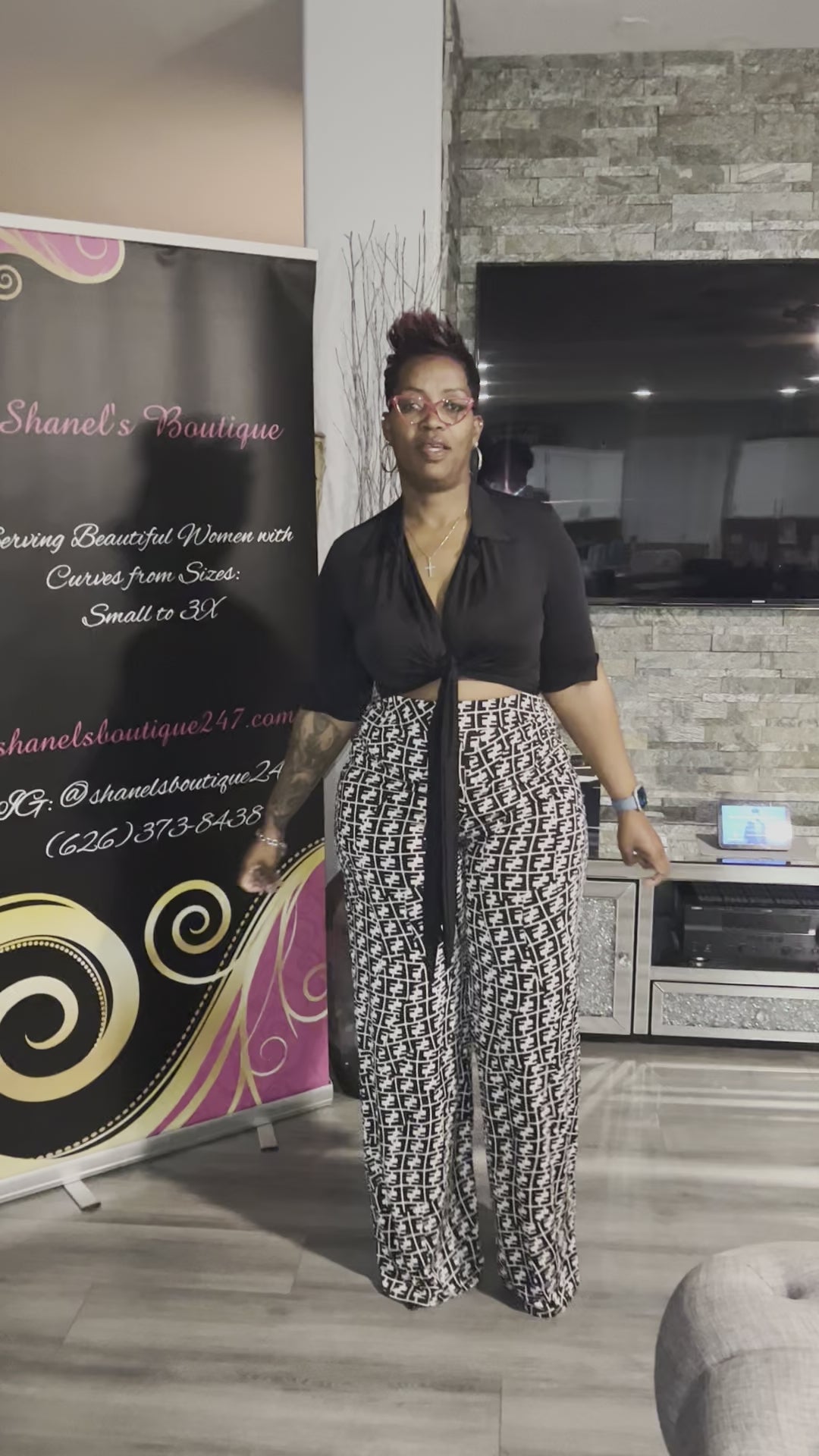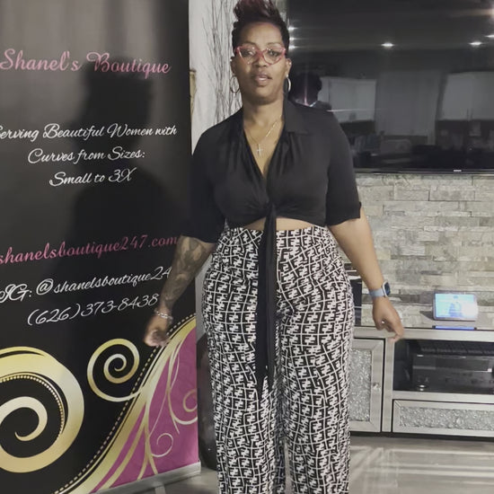 Elevate your style with our Two-Piece Set—a sophisticated ensemble designed for the modern woman who values both fashion and comfort. This set features a crop top with a collar, a v-neck, and short sleeves, paired with high-waisted pants boasting an elastic waistband and wide legs. With a self-tie closure for a personalized fit and no closure for a sleek look, this ensemble effortlessly combines versatility with contemporary fashion. The model, standing at 5'8" and weighing 220 pounds, confidently showcases the set in a size 1X, emphasizing our commitment to inclusive sizing.